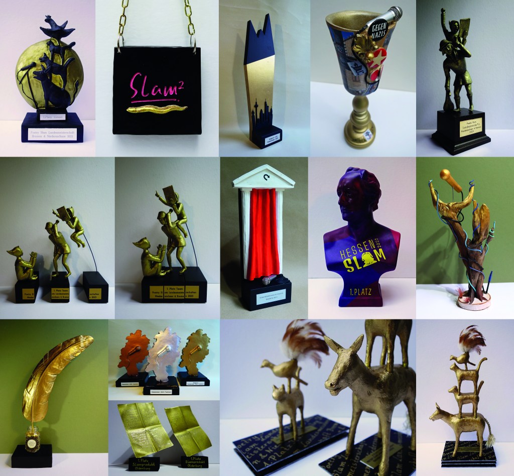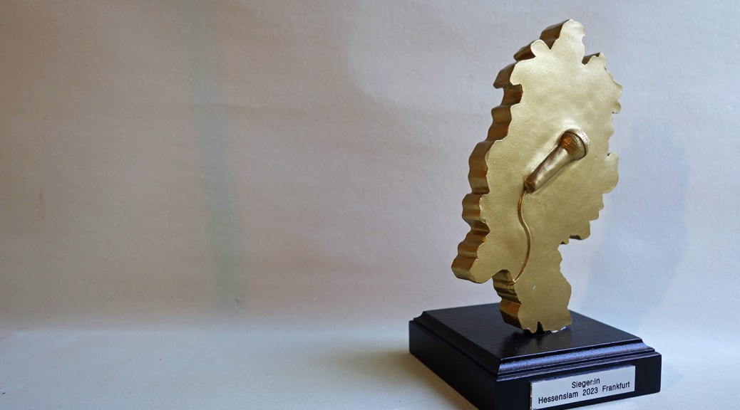 Pokal für die Landesmeisterschaften im Poetry Slam Niedersachsen 2023