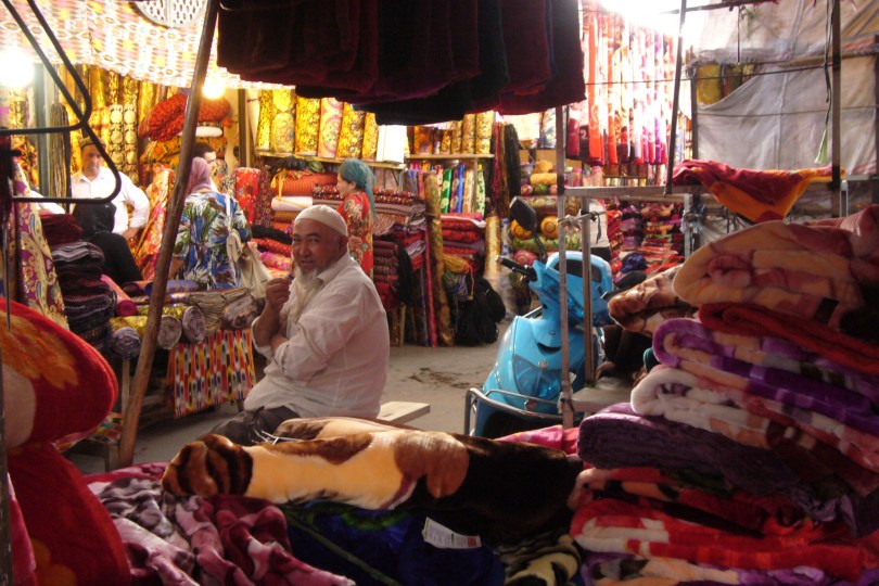 Selling fabrics on Sunday market